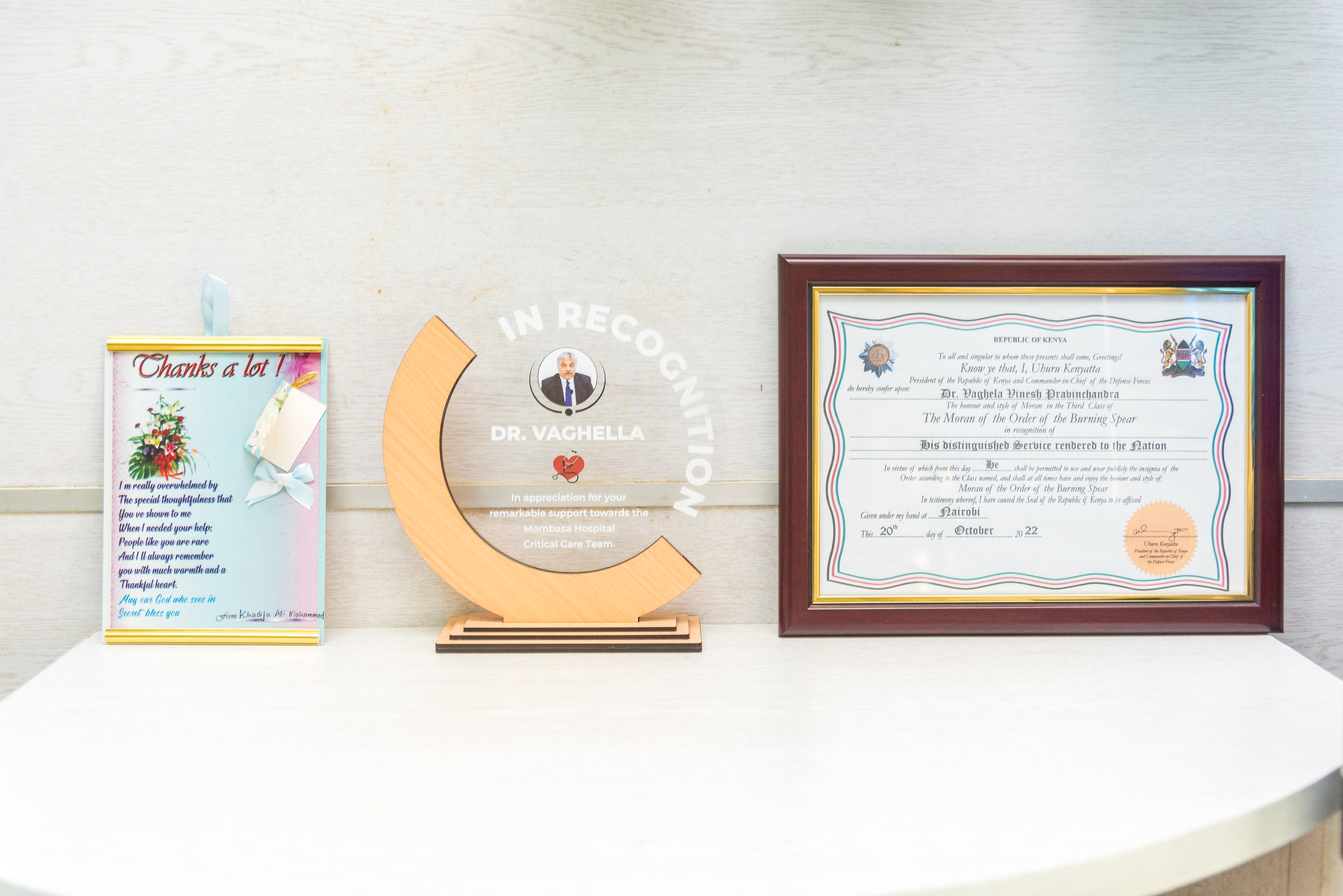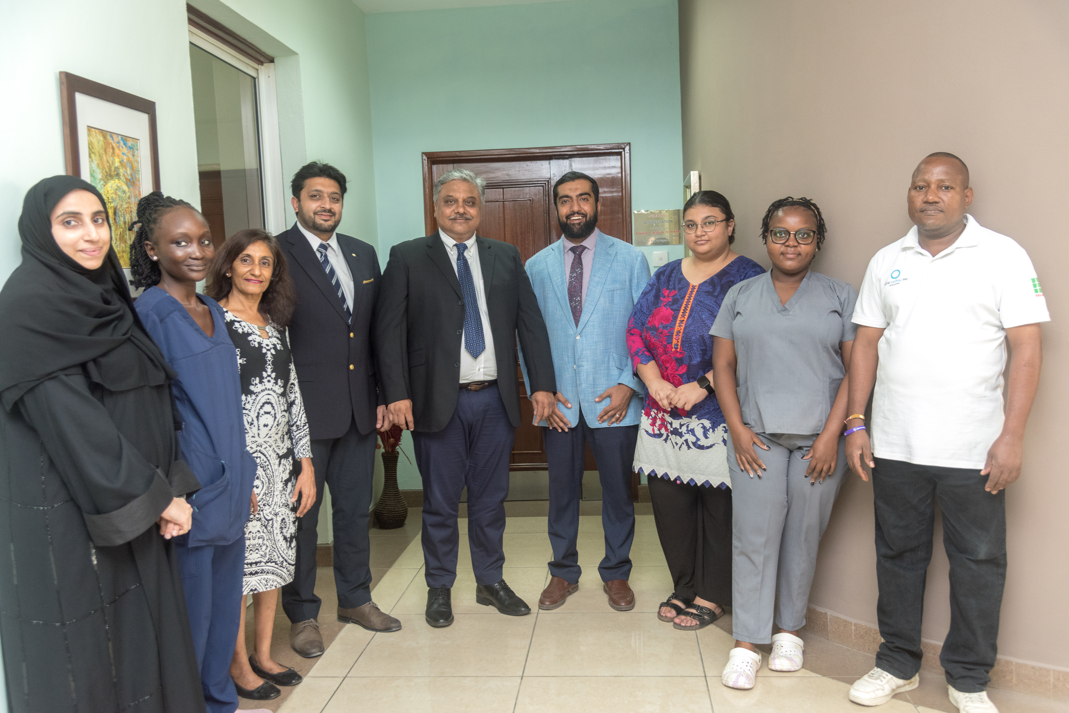 From Left: Shabira Abdulrahman (Accountant), Sylvia Adhiambo Ochieng (Nurse), Renu R. Bhagani (General Manager), Dr. Aarif Varvani (Consulting Physician), Dr. Vinesh P. Vaghela (Consulting Physician / Cardiologist), Dr. Shazim Bagha (Medical Officer), Heena Rehman Ahmed (Front Office Attendant), Carolyn Lucy Onguko (Nurse), Mulei Kimwele (Clinic Messenger).